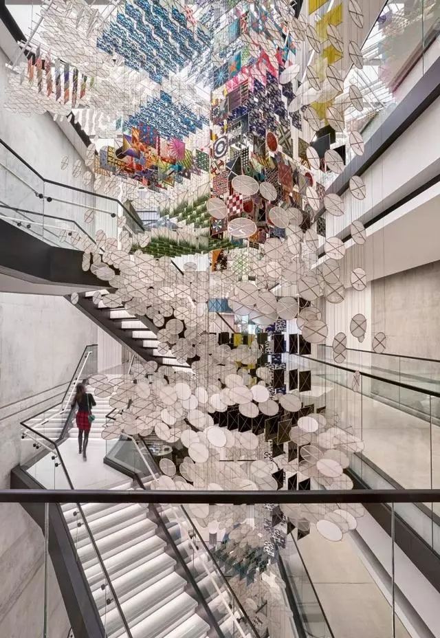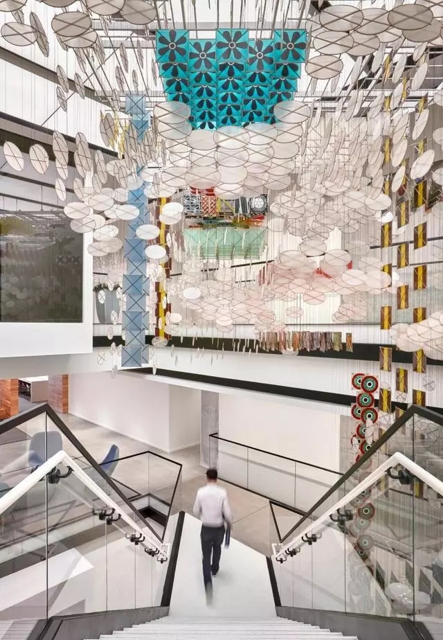 麥當(dāng)勞總部芝加哥一個(gè)充滿活力的長(zhǎng)廊布局像博物館或畫(huà)廊空間每個(gè)總部的九個(gè)故事都被設(shè)想為一個(gè)逐層展開(kāi)的“篇章”。建筑物中央中庭的多向樓梯提供了醒目的焦點(diǎn)和休閑互動(dòng)的大道,同時(shí)也創(chuàng)造了一種在許多方向向前移動(dòng)的ESCHER-ESQUE感覺(jué)。在這里,JACOBHASHIMOTO的巨型藝術(shù)作品向下瀑布,包括數(shù)百個(gè)他的標(biāo)志性微型“風(fēng)箏”。