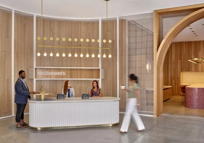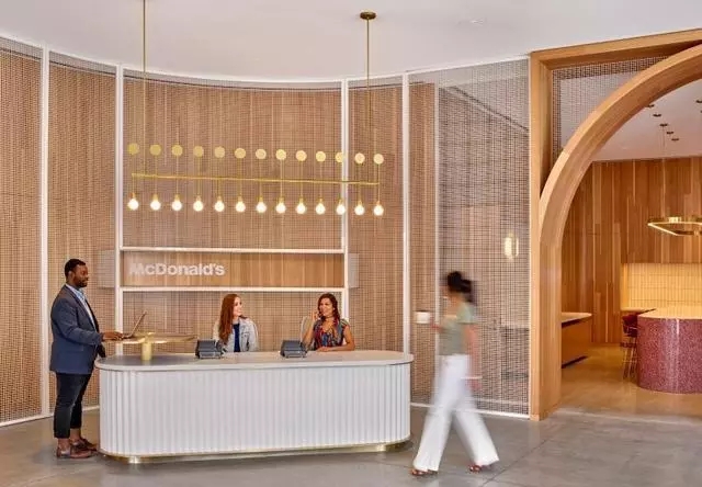麥當(dāng)勞總部芝加哥接待區(qū)對(duì)金色拱門(mén)進(jìn)行了微妙的點(diǎn)頭
