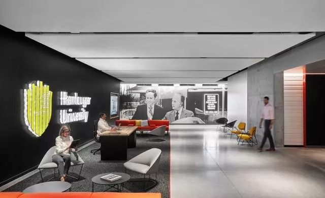 麥當(dāng)勞的新總部被設(shè)想為企業(yè)總部的一部分,以及部分文化中心,學(xué)校和歷史博物館。IA室內(nèi)建筑師設(shè)計(jì)的經(jīng)典工作區(qū)和會(huì)議室與O+A工作室設(shè)計(jì)的工作區(qū)互動(dòng),具有酒店場(chǎng)所的外觀和感覺(jué)。根據(jù)設(shè)計(jì)團(tuán)隊(duì)的說(shuō)法,每個(gè)建筑手勢(shì)都可以獨(dú)立運(yùn)作,并與周?chē)目臻g合作。