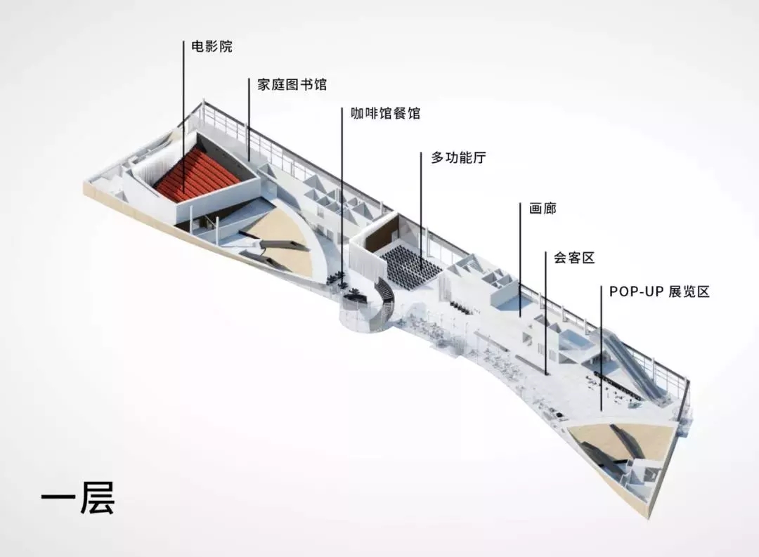 頌歌的支撐結(jié)構(gòu),就是一座鐵橋。而橋的下端,是開放底層大廳,好比室內(nèi)廣場,連接戶外活動空間。