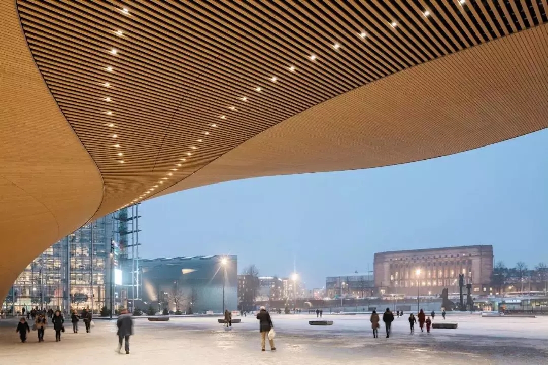 但其實據(jù)設計頌歌的主建筑師之一南安迪(Antti Nousjoki)講,靈感的出發(fā)點,還是在于考慮它的功能。作為一個地處赫爾辛基市中心,毗鄰熱鬧商圈、火車站和美術(shù)館的公共空間,能夠給市民們帶來什么樣的服務?又能填補哪些缺失的城市設施?