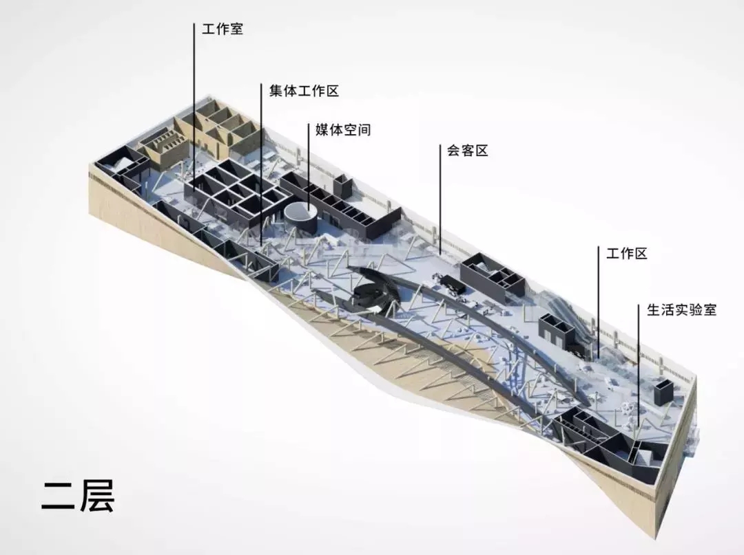 南安迪認為,因為建筑結(jié)構(gòu)打破了常規(guī)的支撐模式,這三層之間并無阻隔,空間流暢,而其中的人和活動也是流動的。