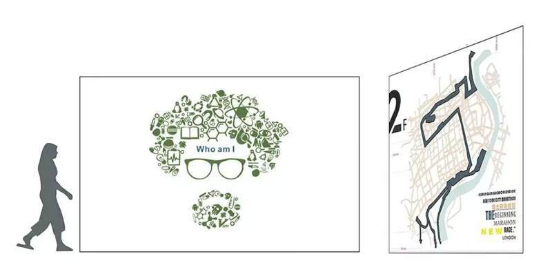 以上是本期課程第一個重點——環(huán)境圖形的內(nèi)容界定。它包括室內(nèi)的導視標識、一系列公司的文化展示,這兩塊內(nèi)容基本構(gòu)成了室內(nèi)環(huán)境圖形設(shè)計的設(shè)計內(nèi)容。