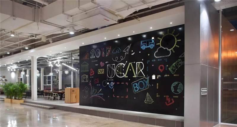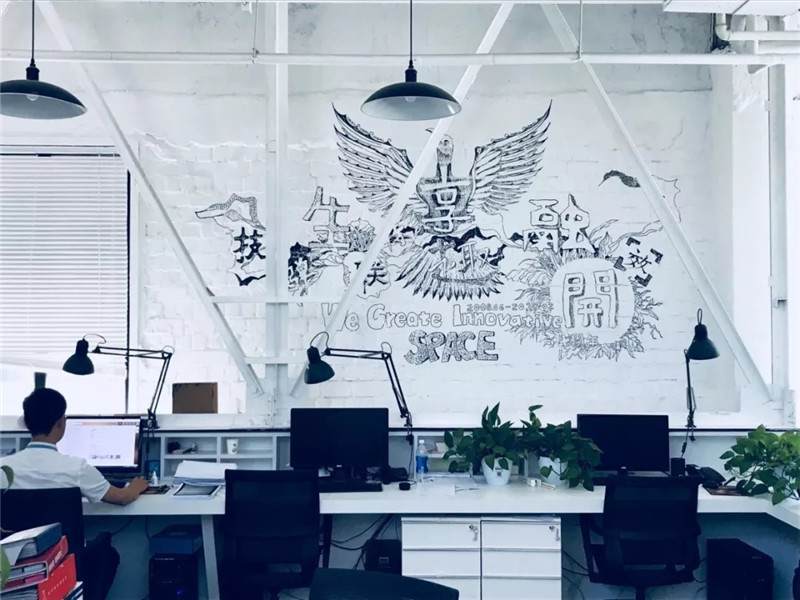 比如這張圖,也是華米科技北京的辦公室,用奧松板開兩個洞,精巧可愛的睡眠艙趴在墻上,利用兩個洞把它組成了自行車的輪廓,超萌的壁畫使墻面不再單一,色彩的對比更加直觀,同時用太空艙的形式增添趣味點,不論是做設(shè)計師還是做工匠,都要秉持設(shè)計的理念去進行選材和制造工藝,把握好每一個細節(jié)。
