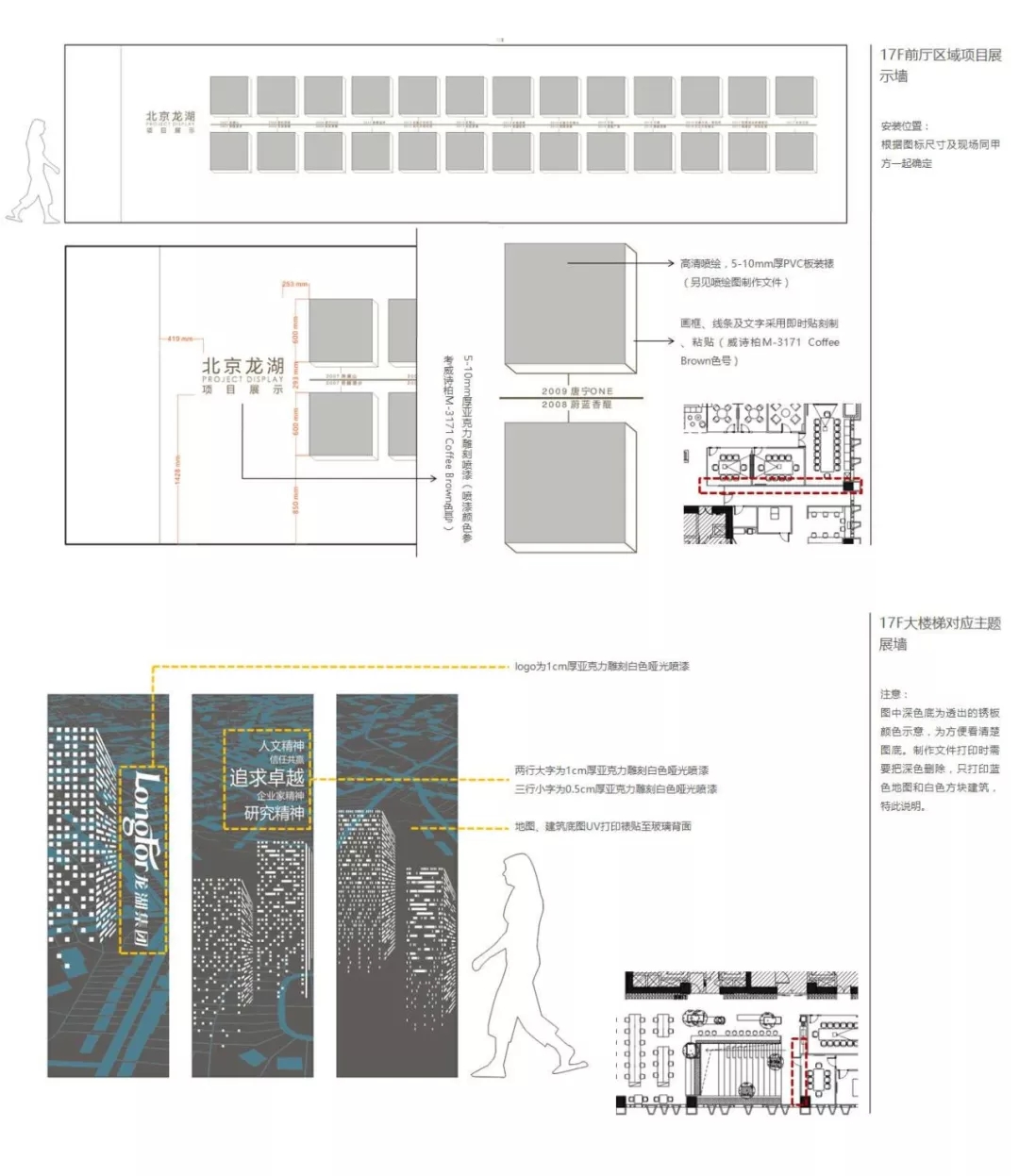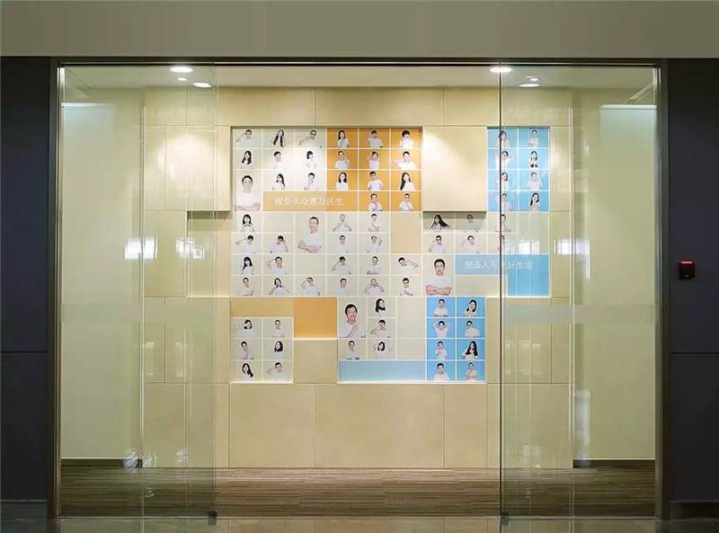 這一部分內(nèi)容跟展示設(shè)計相似,例如上圖,龍湖集團辦公室內(nèi)的一些項目展示團隊的建設(shè),利用了大面積墻面上的空間進行了設(shè)計和制作。