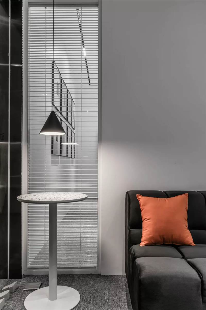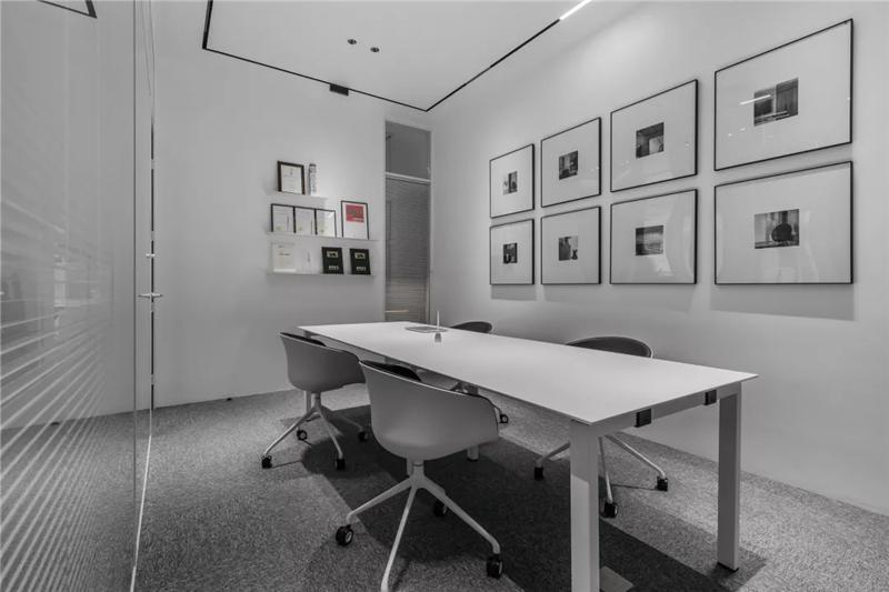 為了同時保證隱私和透明,張馳有道。會議室采用了玻璃+百葉窗的設(shè)計,這樣的交流區(qū)域保持彼此的通透與聯(lián)接,提升了場所的張力。使用貼合設(shè)計的局部掛畫藝術(shù),配以金屬的深邃感官,多媒體影視裝置加強(qiáng)了墻面空間的信息輻射作用。
