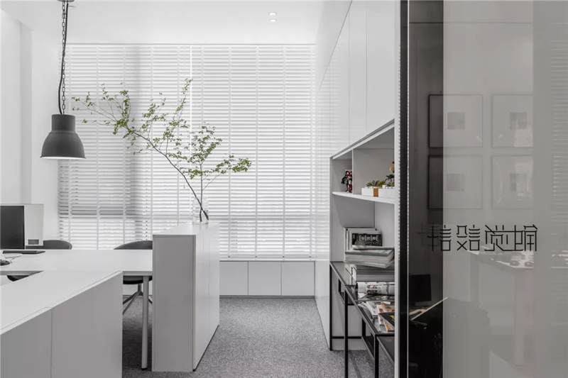 觸覺設(shè)計巧妙擷取文化于當(dāng)代都會空間,展現(xiàn)出雅致韻味的同時留下了更多觸碰的余地。綠植來點(diǎn)亮辦公場所的鮮活生命力,清逸的色彩是思想游龍的軌跡,在留白的空間中伸出觸角,觸覺所及之處,思維綻放遐想。