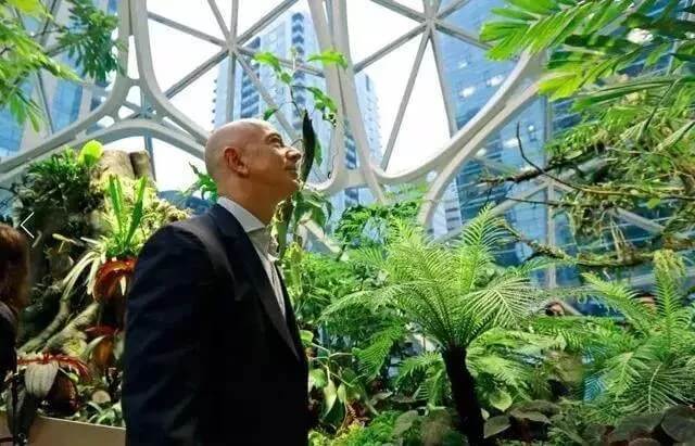 亞馬遜最新總部坐落在西雅圖商業(yè)區(qū),高達(dá)四層,是座熱帶雨林般的溫室建筑,由玻璃和白色鋼筋建造而成,老板杰夫·貝佐斯(Jeff Bezos)站在頂樓招呼員工。