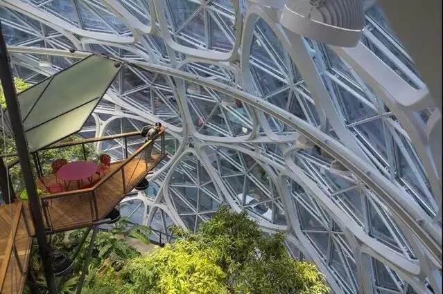 讓他們可以在溪邊的石子小徑上放空自我,在來自南美的大樹下閉目休憩。當(dāng)然以高標(biāo)準(zhǔn)的企業(yè)文化著稱的亞馬遜,也希望 The Spheres 如此優(yōu)美舒適的生態(tài)環(huán)境能夠讓員工更好地沉思和迸發(fā)出靈感的火花。