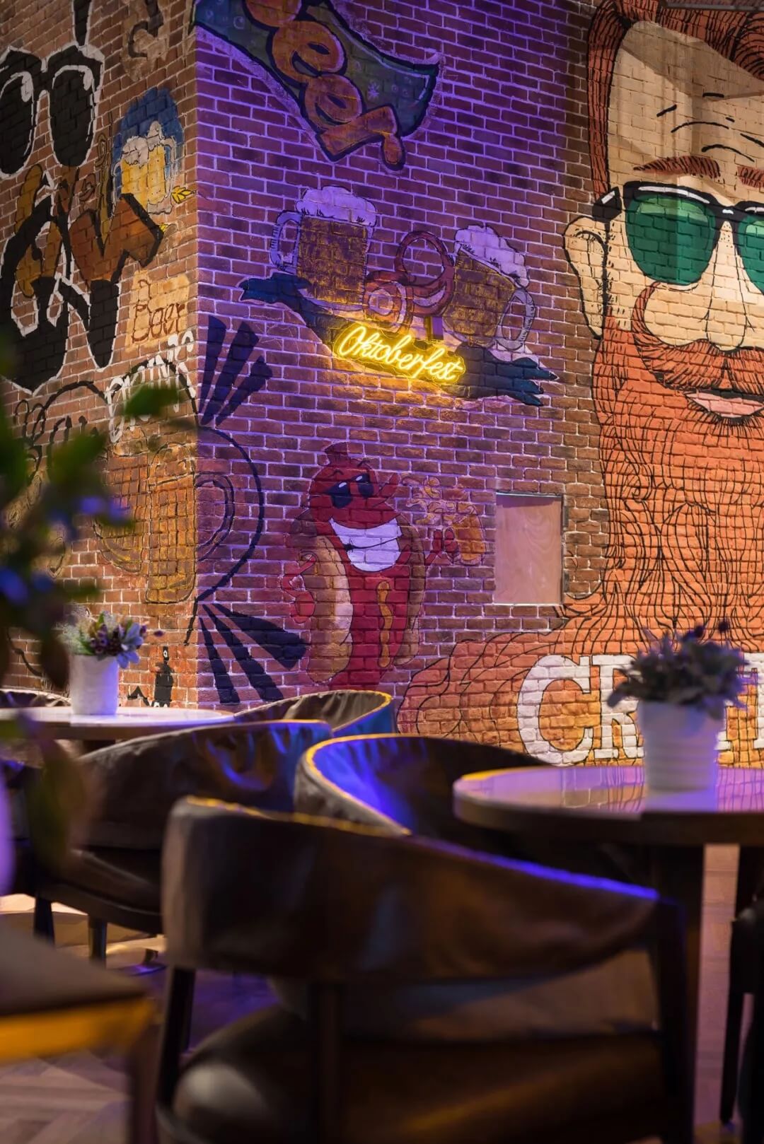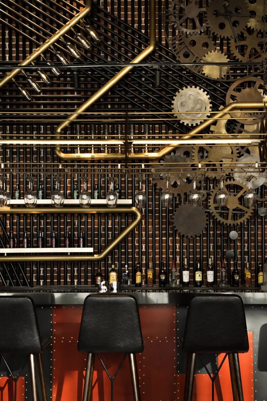 工業(yè)風的精髓在于,在原空間樸拙素簡的本真狀態(tài)下延展其自由隨性的氣質(zhì),在粗獷的空間架構(gòu)中消解拘束感,呈現(xiàn)出大氣又不失細膩的美感。粗礪的紅磚墻、朋克夸張的墻畫涂鴉、裸露的管道線路、復古做舊的齒輪掛件、紅黑交接的鉚釘吧臺......統(tǒng)攝進工業(yè)風的設計常規(guī)之中。
