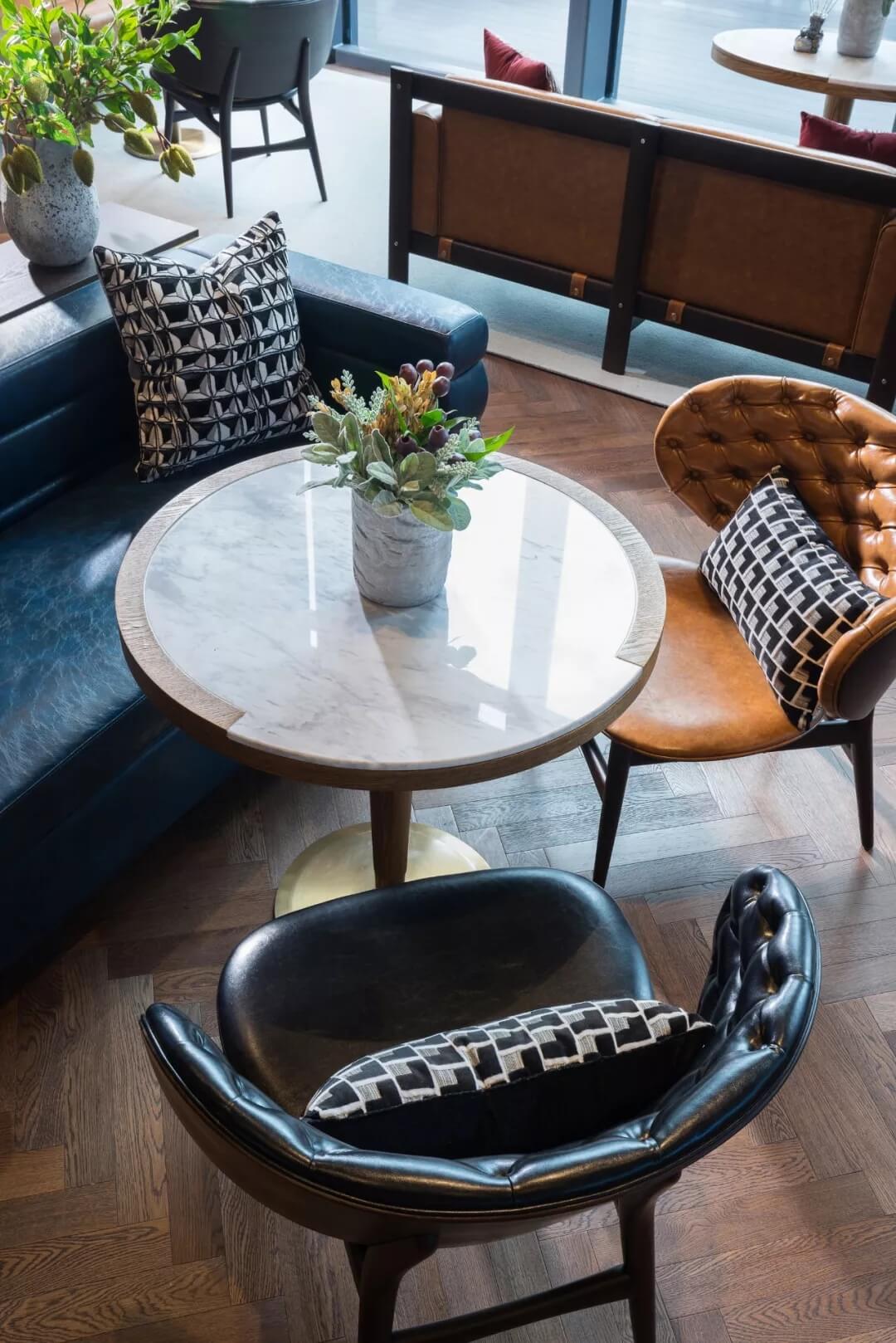 設計運用極簡的語言,打開空間與自然的悄聲對話,咖色的皮質(zhì)沙發(fā)、幾處花藝、數(shù)個土陶裝飾,充盈著活力與生氣,人們置身此處,身心分外舒愜。