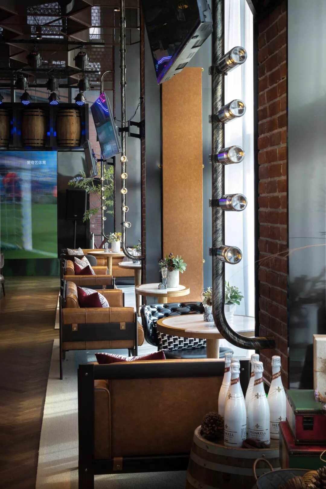 樂尚設計擔綱本案室內(nèi)及軟裝設計,以國際化、多元化的設計詮釋風格定位,在手法上提煉工業(yè)風的構(gòu)件元素,“工業(yè)風的形式與氣質(zhì)融注其中,自然的生態(tài)美亦盡數(shù)納入,粗獷與細膩在映襯中的美學意義更臻完滿,設計的意旨得以實現(xiàn),營造出俱樂部看球賽現(xiàn)場的濃郁氛圍感。”
