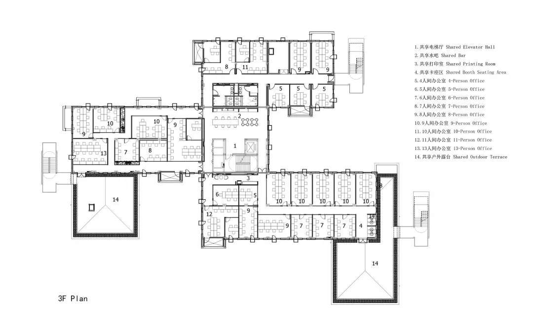 在空間劃分上,我們遵循城市綠色生態(tài)美學,充分利用創(chuàng)新技術進行模塊化設計,將裝配式建造、節(jié)能低碳等許多新理念應用到整個空間中去,將整體空間劃分成商務區(qū)、辦公區(qū)和休閑區(qū),具體到擁有獨立辦公室65個,辦公工位464個,會議室5個,以及水吧、咖啡廳、休息艙、茶室、電話亭等共享區(qū),我們想要脫離傳統(tǒng)辦公空間的單調枯燥,讓一站式的休閑服務和辦公完美結合,觸達現(xiàn)代人內心的深層需求,從而使整體設計方案在保持高品質的同時做到高效、低成本。