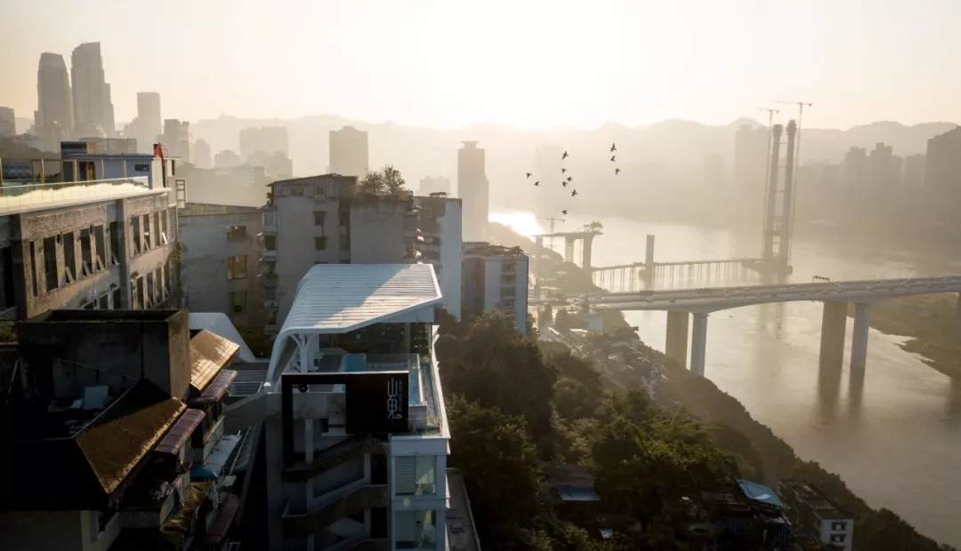 山鬼Mont Mirage邀請杭州尋常設(shè)計(jì)Usual Studio擔(dān)綱本次解放碑店的建筑及室內(nèi)設(shè)計(jì),由主創(chuàng)設(shè)計(jì)師林經(jīng)銳操刀,該項(xiàng)目位于重慶市渝中區(qū)枇杷山后街影視產(chǎn)業(yè)園舊印制一廠,兩幢主體建筑順應(yīng)地勢,一前一后,高低有序地坐落于坡地之上,直面壯美長江,俯瞰兩座大橋之間的綠洲,飽覽城市天際線。