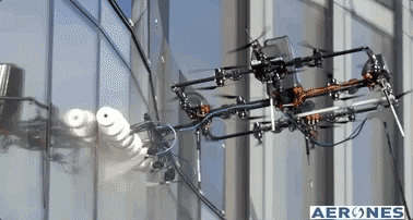 ▲無人機(jī)代替蜘蛛人清洗幕墻