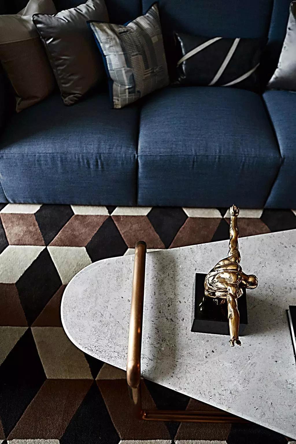 在高級灰的主調(diào)下,任憑灰藍、灰咖、米灰自由穿梭。金屬與大理石外表下的冷酷質(zhì)感、紡織布藝的溫柔親膚與皮革制品帶有的手工溫度,交纏錯綜,剛?cè)嵯酀6ㄖ票跔t與優(yōu)雅的Minotti沙發(fā),隱約顯露出居所主人優(yōu)越的品味。